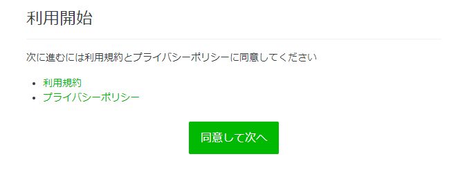 初回は利用開始する為の利用規約とプライバシーポリシーの内容を確認と同意するページが表示されるので、内容を確認の上同意して次へをクリックしましょう。