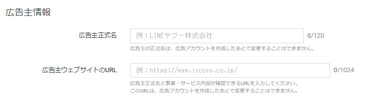 自社の場合は自社情報の入力ですが、自社以外の広告を配信しようと考えている場合は、その広告配信しようとしているサービスの情報を入力してください。