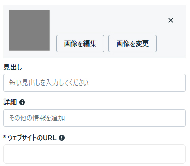 アップロード後、各カードごとに「見出し」「詳細」「ウェブサイトURL」を入力します。