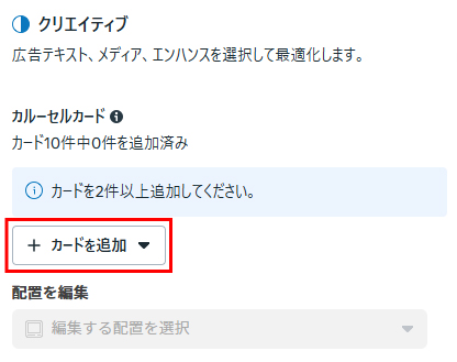 広告セットの設定後、カルーセル広告を設定します。