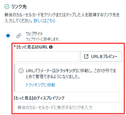 カルーセル広告のリンク先を設定します。