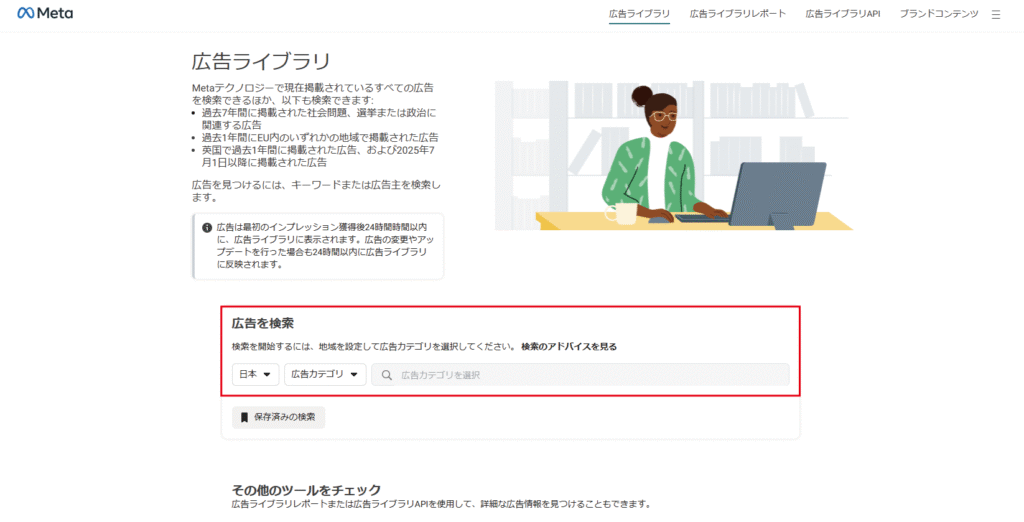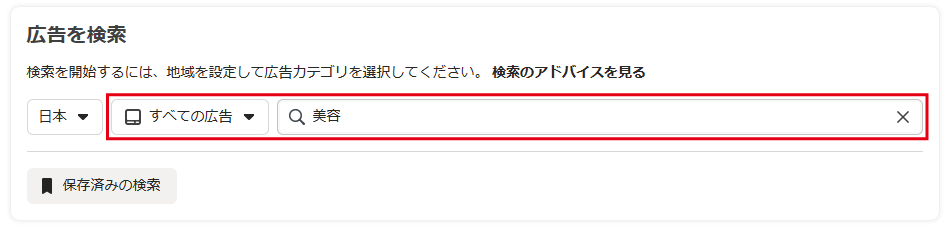 Meta広告ライブラリの使い方は非常にシンプルで、直感的に操作できます。