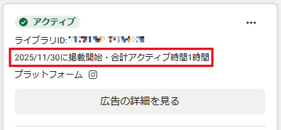掲載開始日から長期間配信が継続されているMeta広告は、効果が高い「勝ちクリエイティブ」の可能性があります。