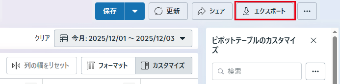 Meta広告マネージャで分析したデータは、レポートとしてファイルに出力できます。