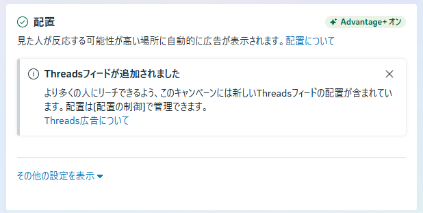 Meta広告を配信するプラットフォームと配置を設定します。