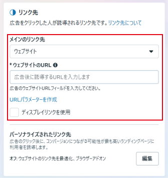 ユーザーがMeta広告をクリックした後に遷移するページのURLを設定します。