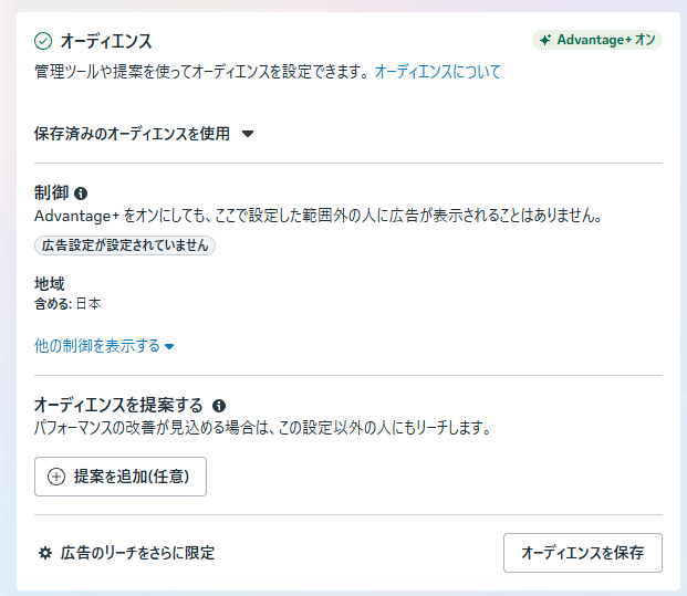Meta広告を配信するターゲット(オーディエンス)を設定します。