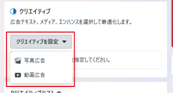 広告の設定では、ユーザーが目にする広告クリエイティブ、つまり画像や動画、テキストなどを設定します。